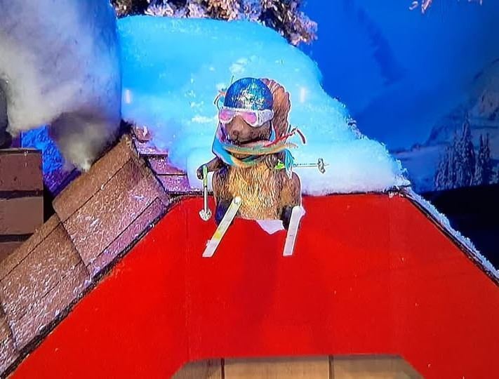 BIG BROTHER BENNY THE BB SQUIRREL SKIING WITH SNOW SCREEN MATCHED!