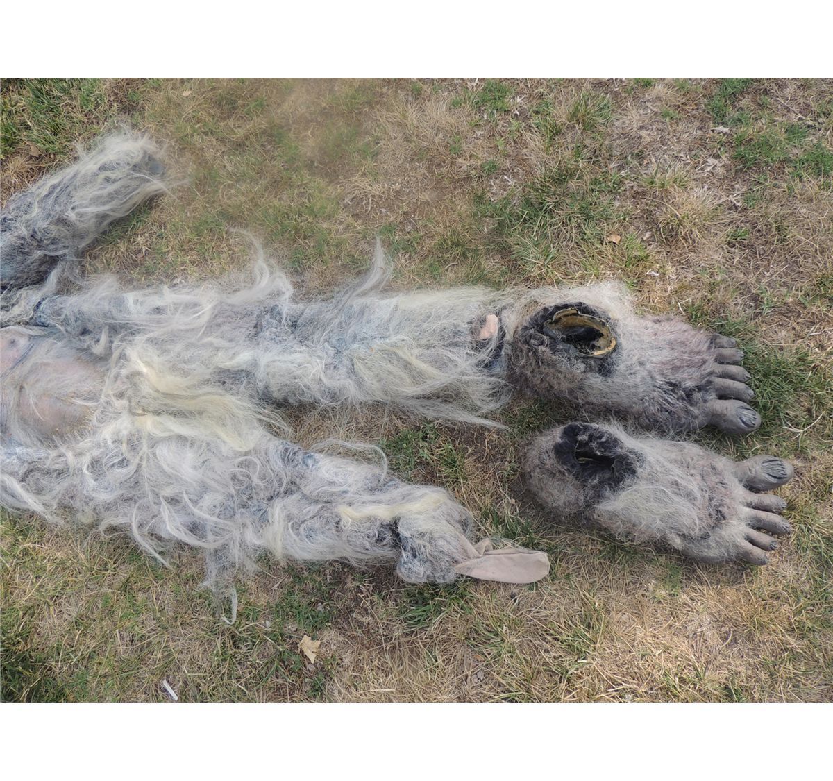 This is a very well made Abominable Snowman, yeti, Sasquach, or Big Foot costume. Includes the complete body suit, the matched pair of feet, which never come around, and the full head cowl. Missing the gloves, and facial appliance. All latex on a cloth body suit with real fur. This is by far the nicest Abominable Snowman, yeti, Sasquach, or Big Foot costume I have ever offered.