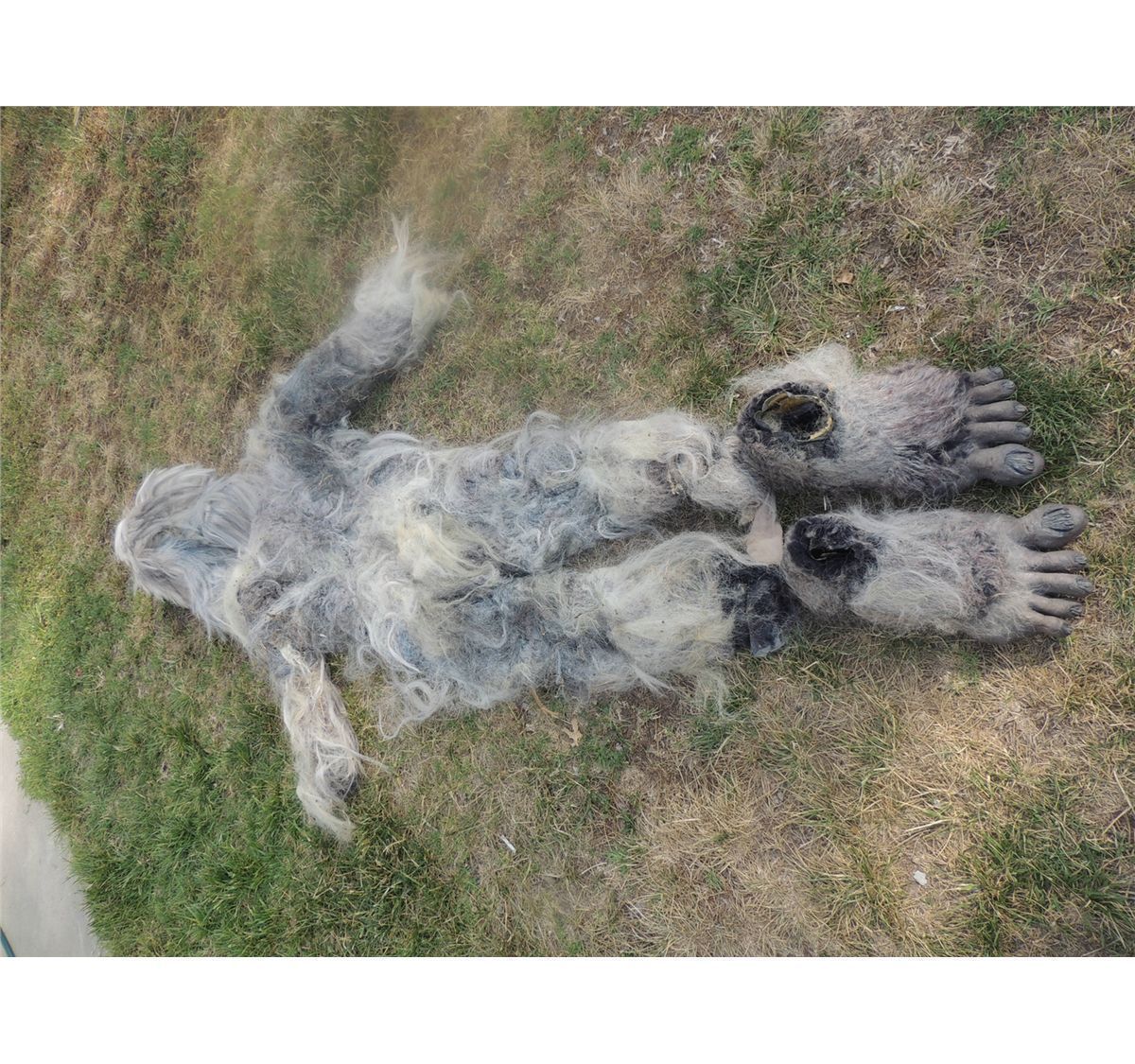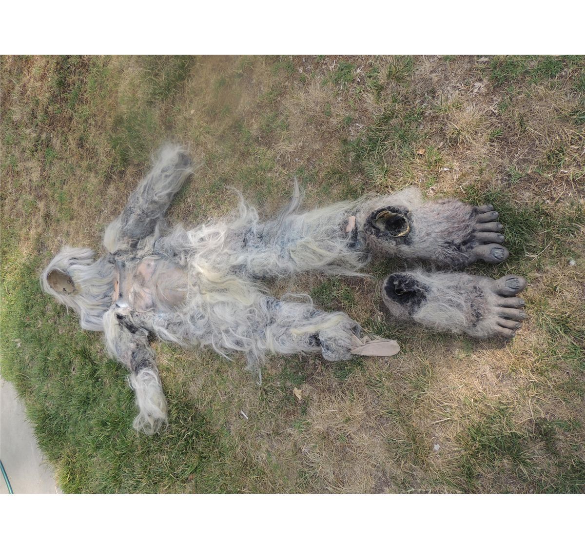 This is a very well made Abominable Snowman, yeti, Sasquach, or Big Foot costume. Includes the complete body suit, the matched pair of feet, which never come around, and the full head cowl. Missing the gloves, and facial appliance. All latex on a cloth body suit with real fur. This is by far the nicest Abominable Snowman, yeti, Sasquach, or Big Foot costume I have ever offered.