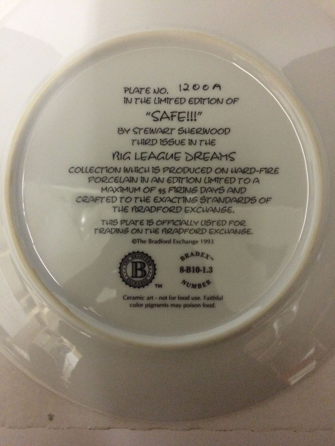 BIG LEAGUE DREAMS "SAFE" DECORATIVE PORCELAIN PLATE (#1200 A)