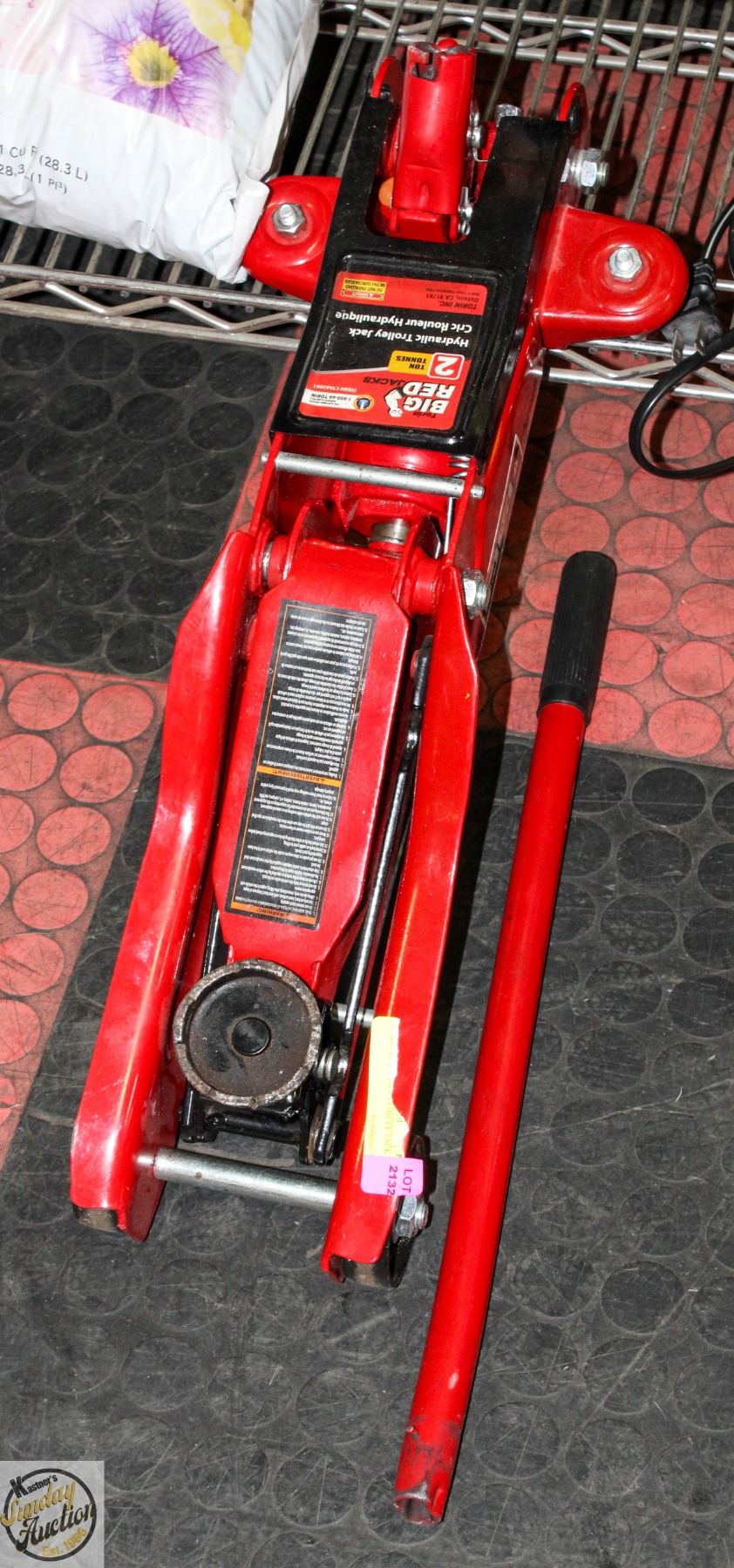BIG RED 2 TON VEHICLE JACK **ALL ITEMS MUST BE REMOVED BY 5PM SATURDAY, JUNE 14TH 2025. ALL REMAINING ITEMS WILL BE SUBJECT TO A $6.00 PER DAY STORAGE CHARGE. ANY ITEMS REMAINING AFTER MONDAY, JUNE 30TH, 2025 WILL BE CONSIDERED FORFEITED. NO REFUNDS WILL BE ISSUED FOR FORFEITED ITEMS. TO SCHEDULE A PICK UP APPOINTMENT CLICK HERE