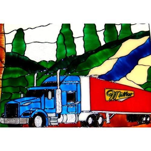 Calling all 18 wheelers...Our Miller semi wheels down the highway without a care. This painting is large with measurements of 18"h x 24"w and as with all my paintings is presented on 1/8" acrylic panels, signed and dated complete with hooks and hanging chain for a very authentic presentation.