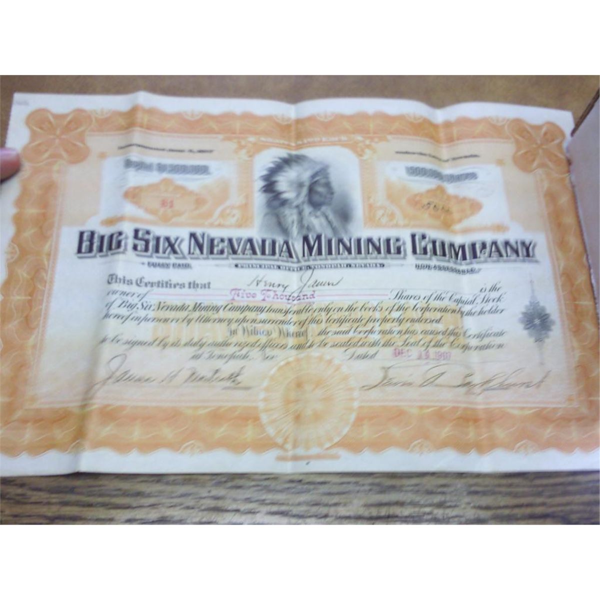 5000 SHARES DATED DEC. 14TH 1907