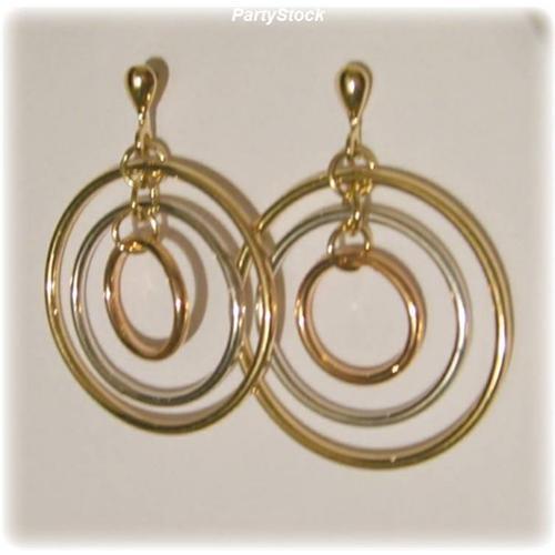 THREE Big round Hoops dangle from pierced posts! The inner hoop is made of solid 14K Rose Gold, the middle hoop is made of solid 14K White Gold, and the outer hoop is made of solid 14K Yellow Gold. Big and bold, yet lightweight and comfortable! Their versatility will make them your favorites!