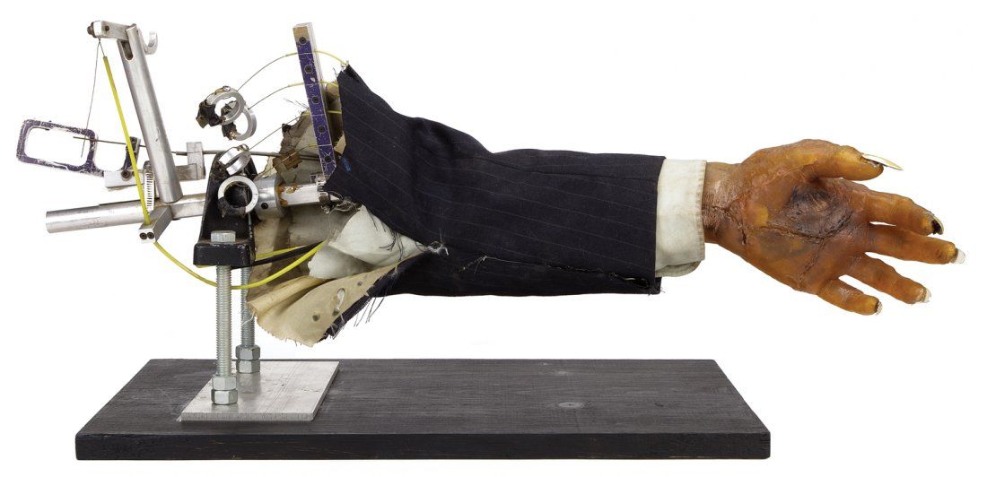 Hand still articulates at the wrist, individual fingers work. Machined aluminum armature under hot-melt vinyl "skin".