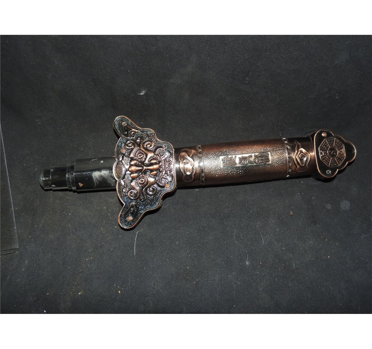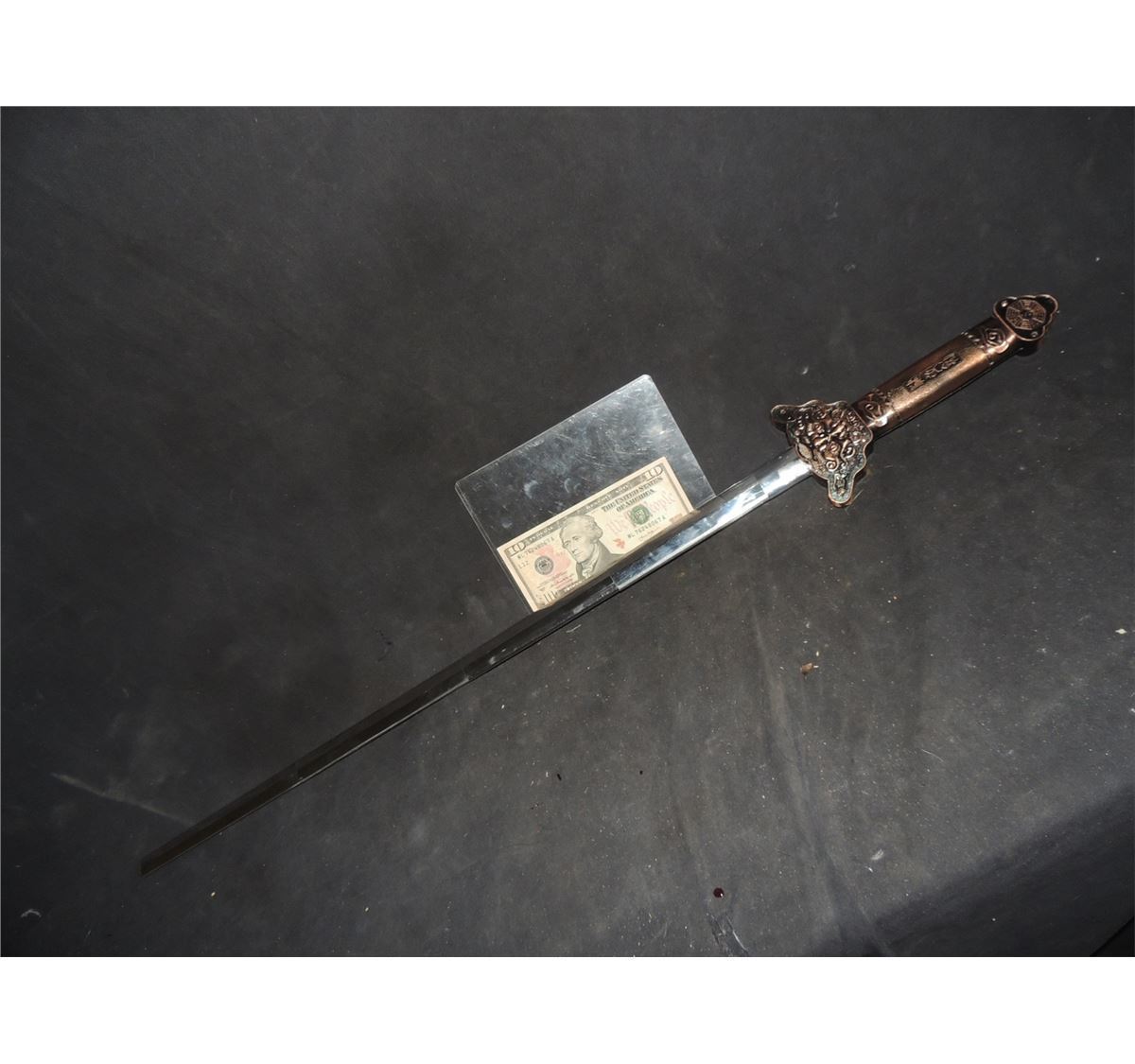 I am told this rare RETRACTABLE sword was Screen Used in BIG TROUBLE IN LITTLE CHINA. Retracts, but needs to be reset each time. This is not spring loaded.