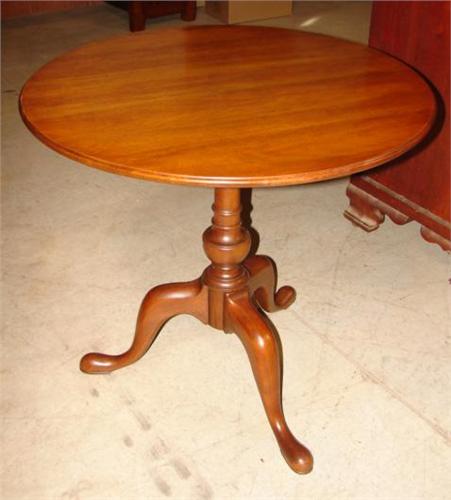BIGGS MAHOGANY TILT-TOP TABLE. Stamped on bottom "Biggs". Queen Anne style feet. Minor surface scratches. 30"H, 30"W.