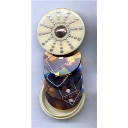 BIJOUTERIE - An English ivory circular counter box, the cover with gold pique spokes and central...