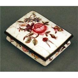 BIJOUTERIE - An enamel rectangular snuff box, painted with roses and other flower sprays, metal...