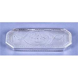 BIJOUTERIE - A George III neo-classical box, of canted rectangular form, the hinged cover with central oval containing bright cut fruit and flower filled basket within leaf swags, the underside similarly engraved and with central urn, mirror to underside of cover, 3.5in wide, sponsor's mark only, Thomas Phipps & Edward Robinson II, London c.1790 (see illustration)