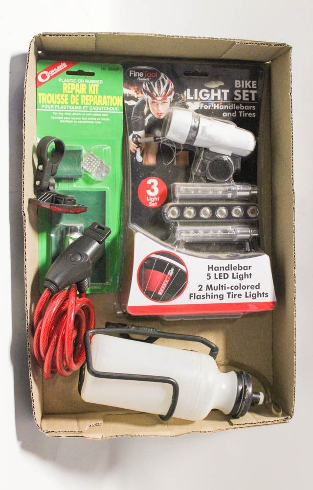 BIKE LOT-LOCK W/KEY, PATCH REPAIR, LIGHT SET,