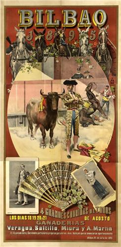 UNCETA, MARCELINO. BILBAO, CORRIDA DE TOROS. 1895. 271x136,5cm. (106,3x53,3in.). Litografía. A-. Entelado.