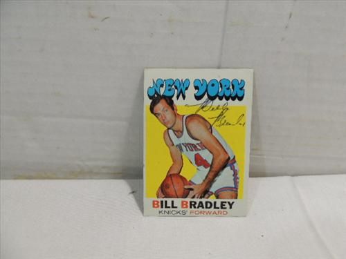 BILL BRADLEY ON SPORTS CARD SIGNATURE AUTOGRAPH. NO COA. AS SHOWN. VIEW PICTURE FOR DETAIL.