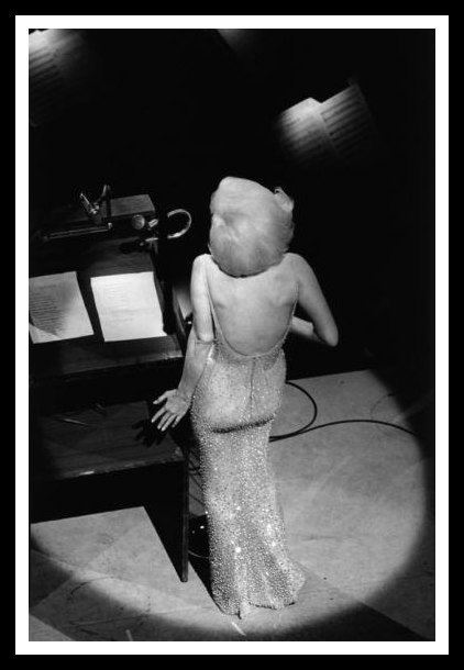 BILL RAY: MARILYN MONROE SINGING TO JFK at Birthday gala. Premium print. Image: 21x15 inches. Professionally mounted and framed in wood. Not signed.
