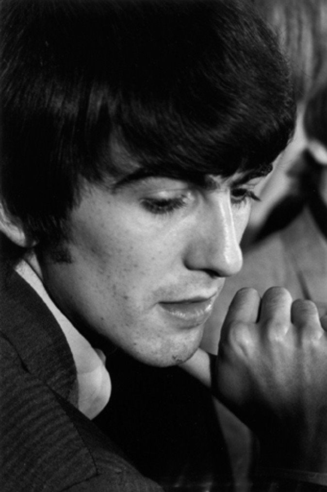 George Harrison at LA press conference in 1964 by photographer Bill Ray. Signed by Bill Ray. Silver gelatin later print. Supplied with Bill Ray coa. Size: 11x14 inches with white borders.