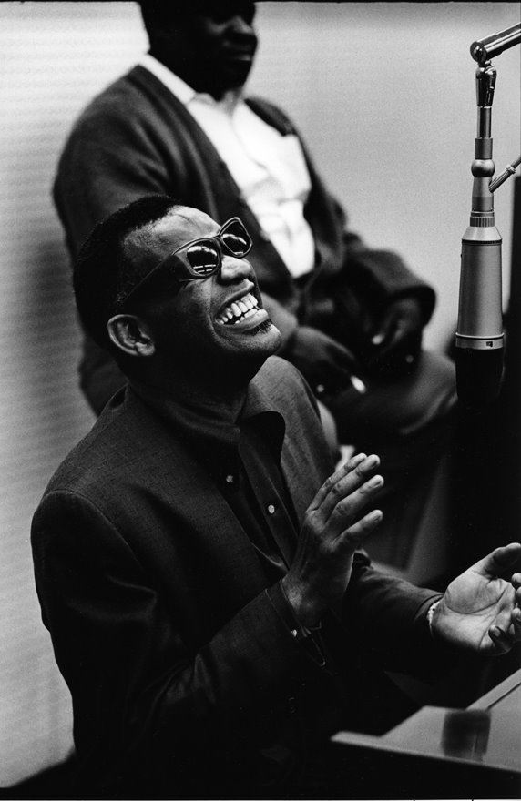 A 11x14 inch Silver gelatin later print signed by Bill Ray of Ray Charles in the studio in 1966 in LA. Taken on assignment for Life magazine. Condition Report: Museum quality. Provenance: Supplied with Bill Ray coa.