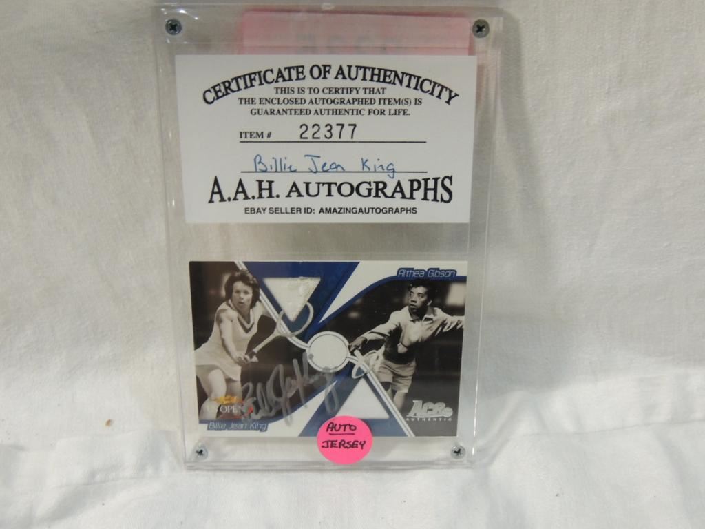 BILLIE JEAN KING AUTOGRAPHED TENNIS PLAYER CARD, AAH AUTOGRAPHS CERTIFICATE OF AUTHENTICITY. COLLECTIBLE AS SHOWN SEE PHOTO FOR MORE DETAILS.