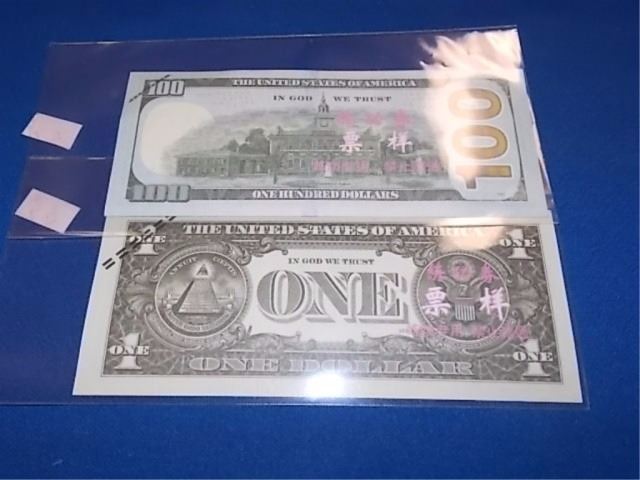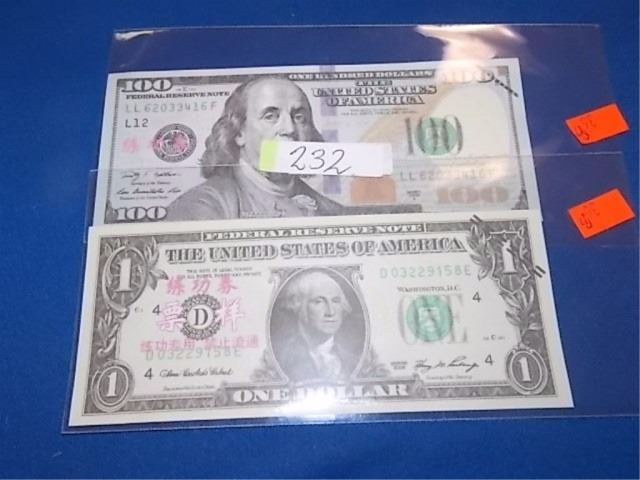 BILLS - 2 TTL - $100 USA & $1 USA - NOT LEGAL TENDAR