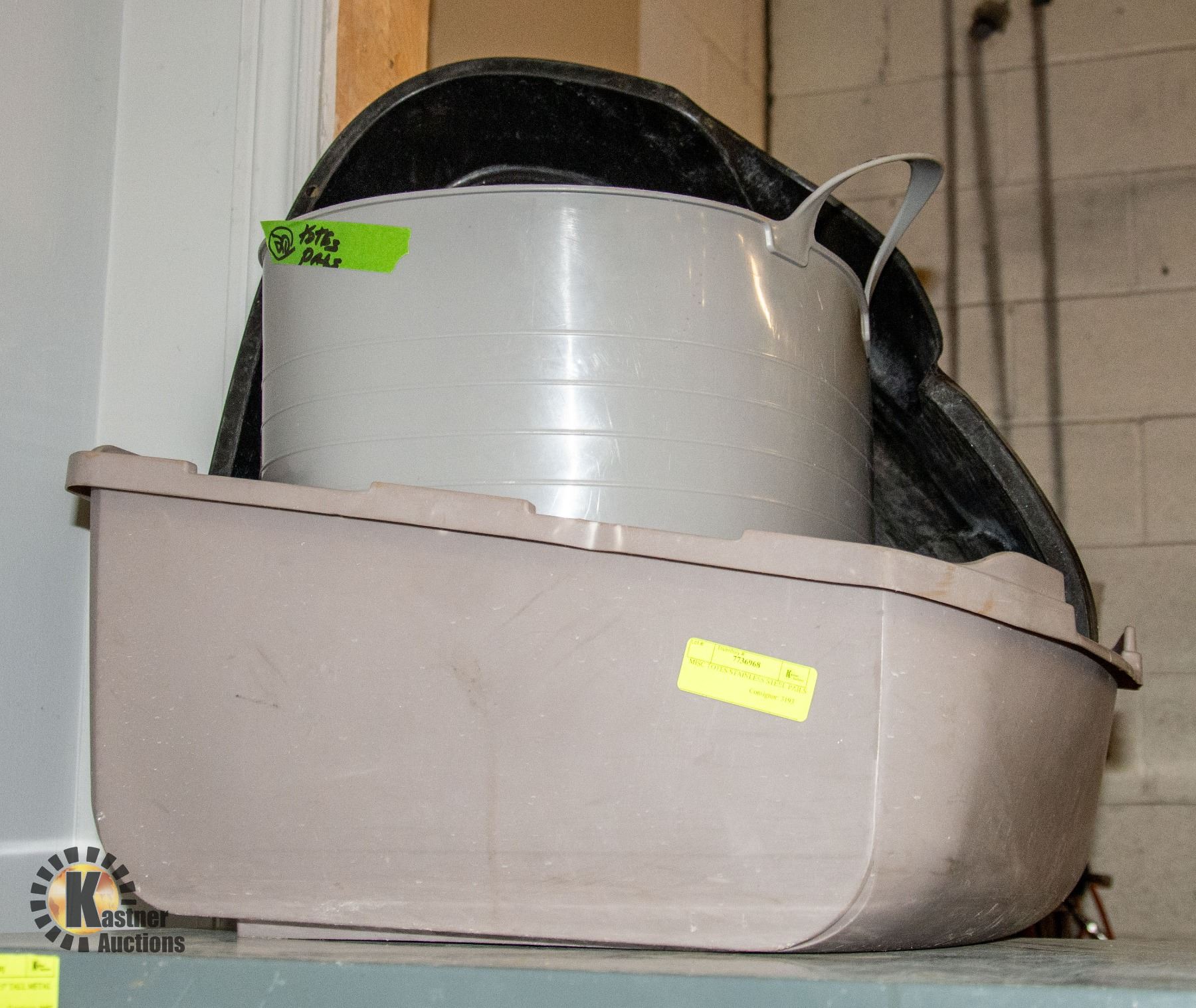 BIN, CAT LITTER BOX & MISC METAL BUCKETS