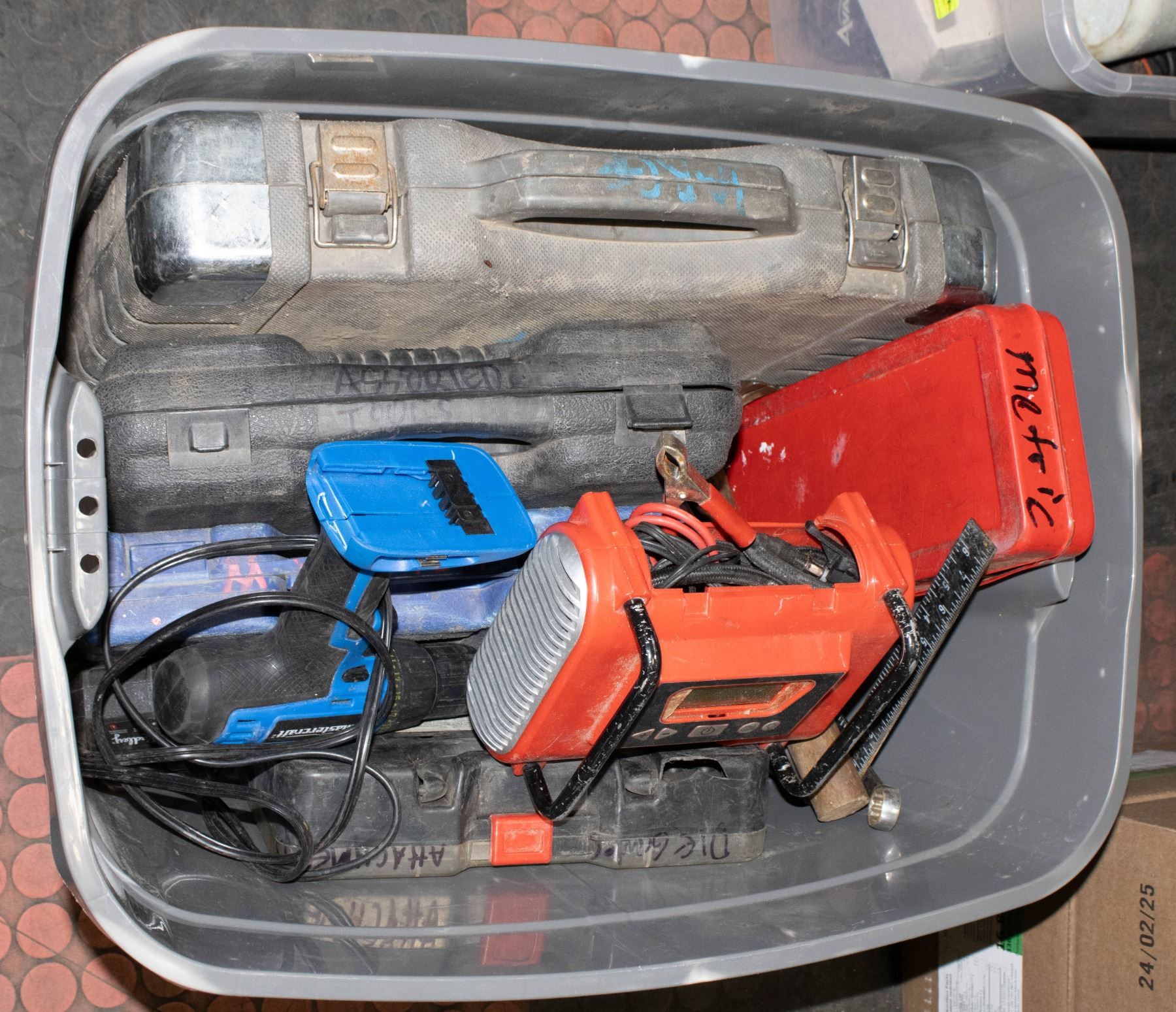 BIN FULL OF ASSORTED TOOLS SOCKETS MORE