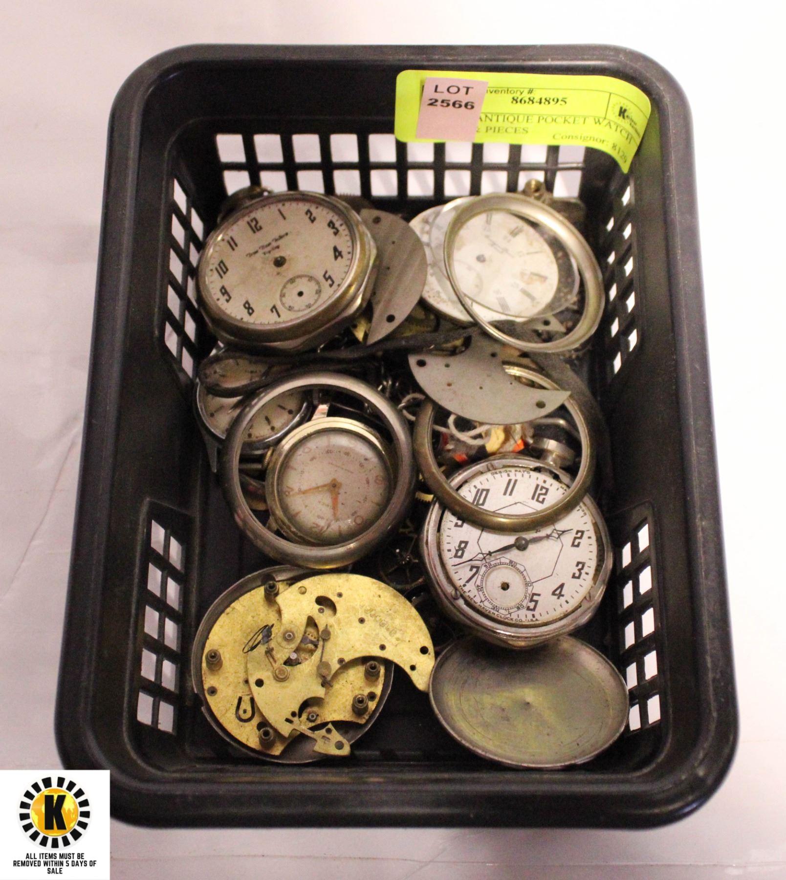 BIN OF ANTIQUE POCKET WATCH PARTS & PIECES