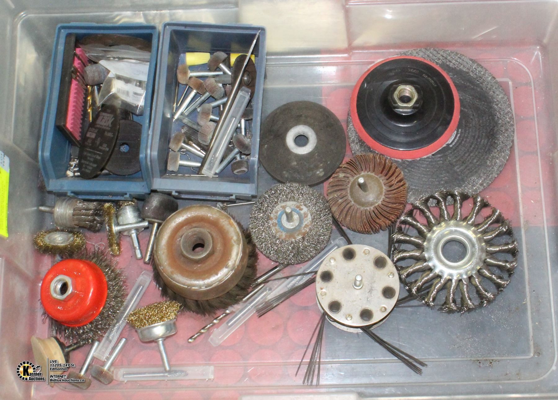 BIN OF ASSORTED FLAPPER WHEELS, WIRE WHEELS &