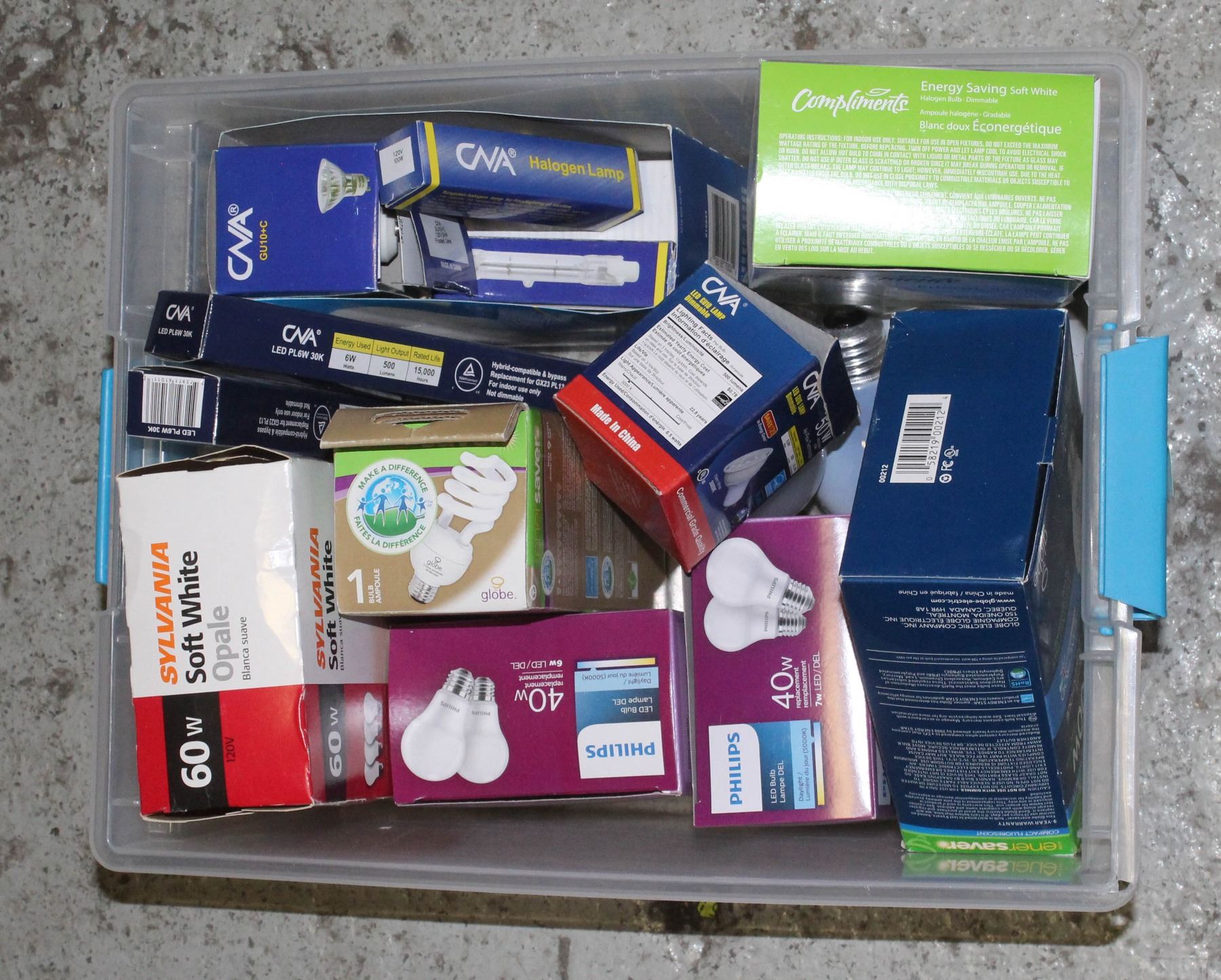 BIN OF ASSORTED LIGHTBULBS