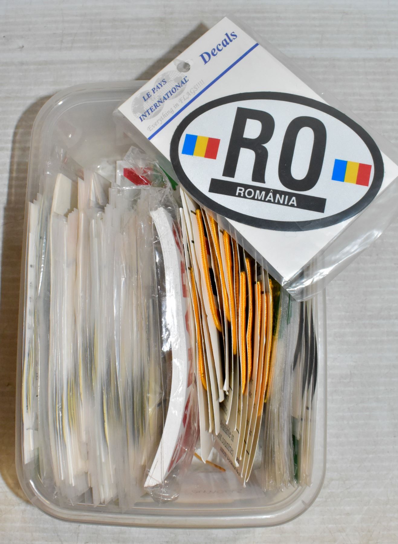 BIN OF ASSORTTED DECALS / STICKERS