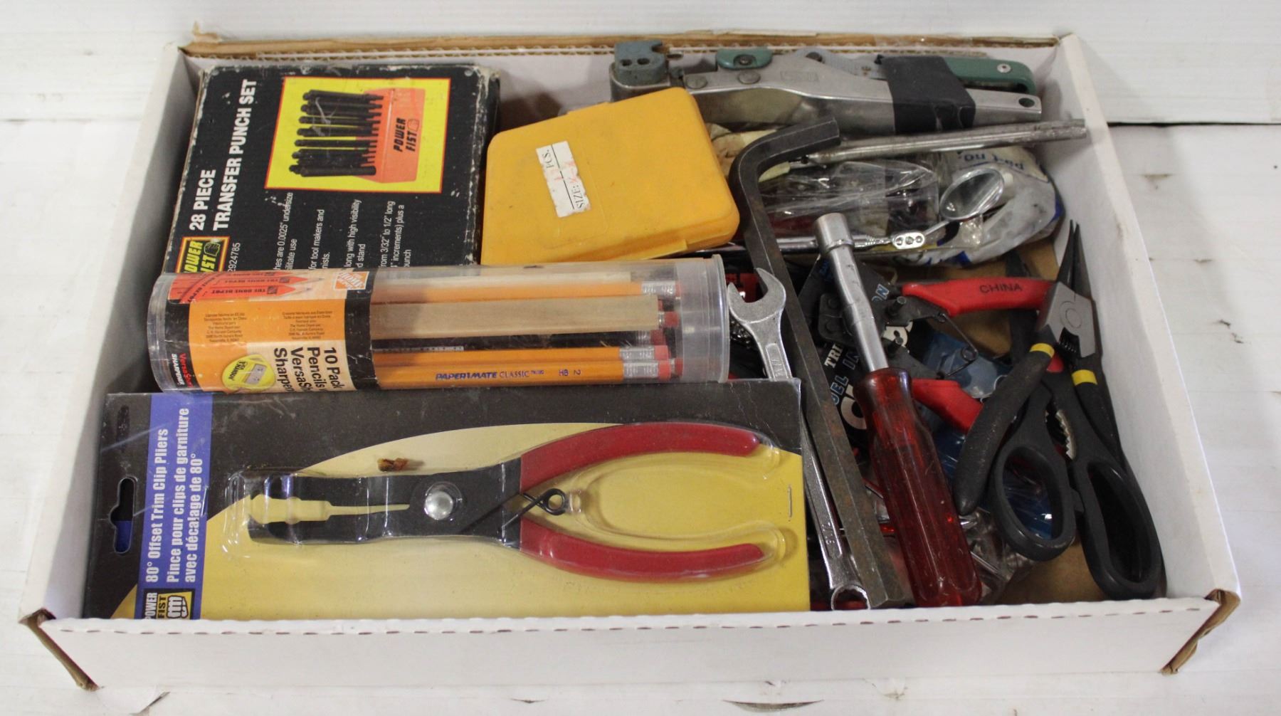 BIN OF CLAMPS, TOOLS, PUNCHES, BITS, & MISC