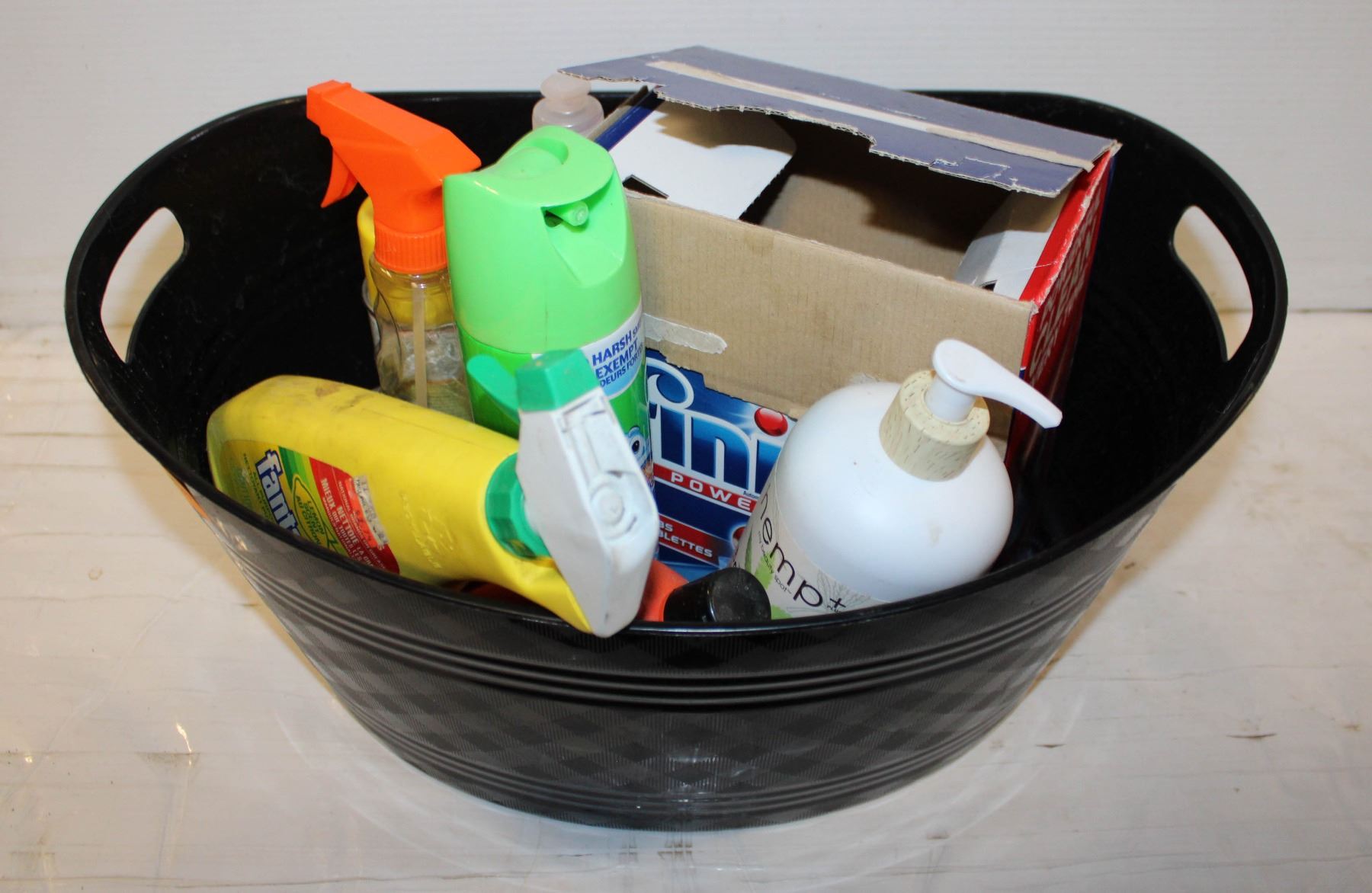 BIN OF CLEANING SUPPLIES