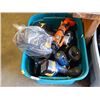 BIN OF CORDLESS DRILLS, BATTERIES AND CHARGERS