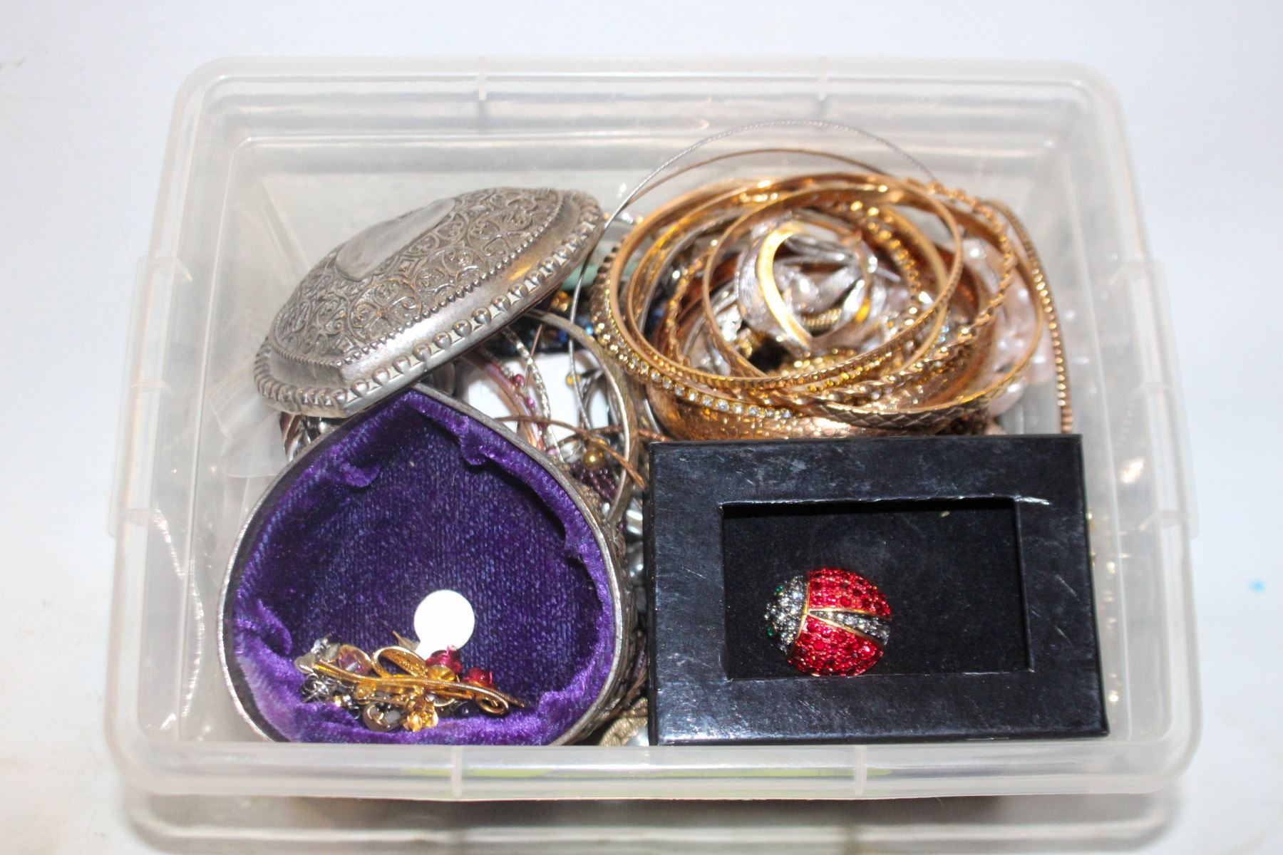 BIN OF JEWLERY AND BROACHS