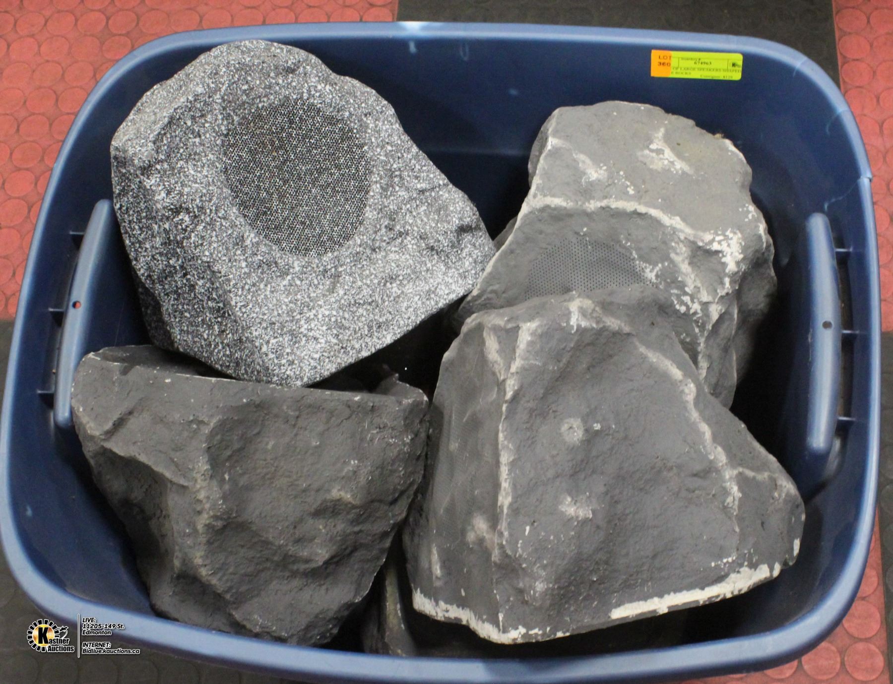BIN OF LARGE SPEAKERS SHAPED LIKE ROCKS
