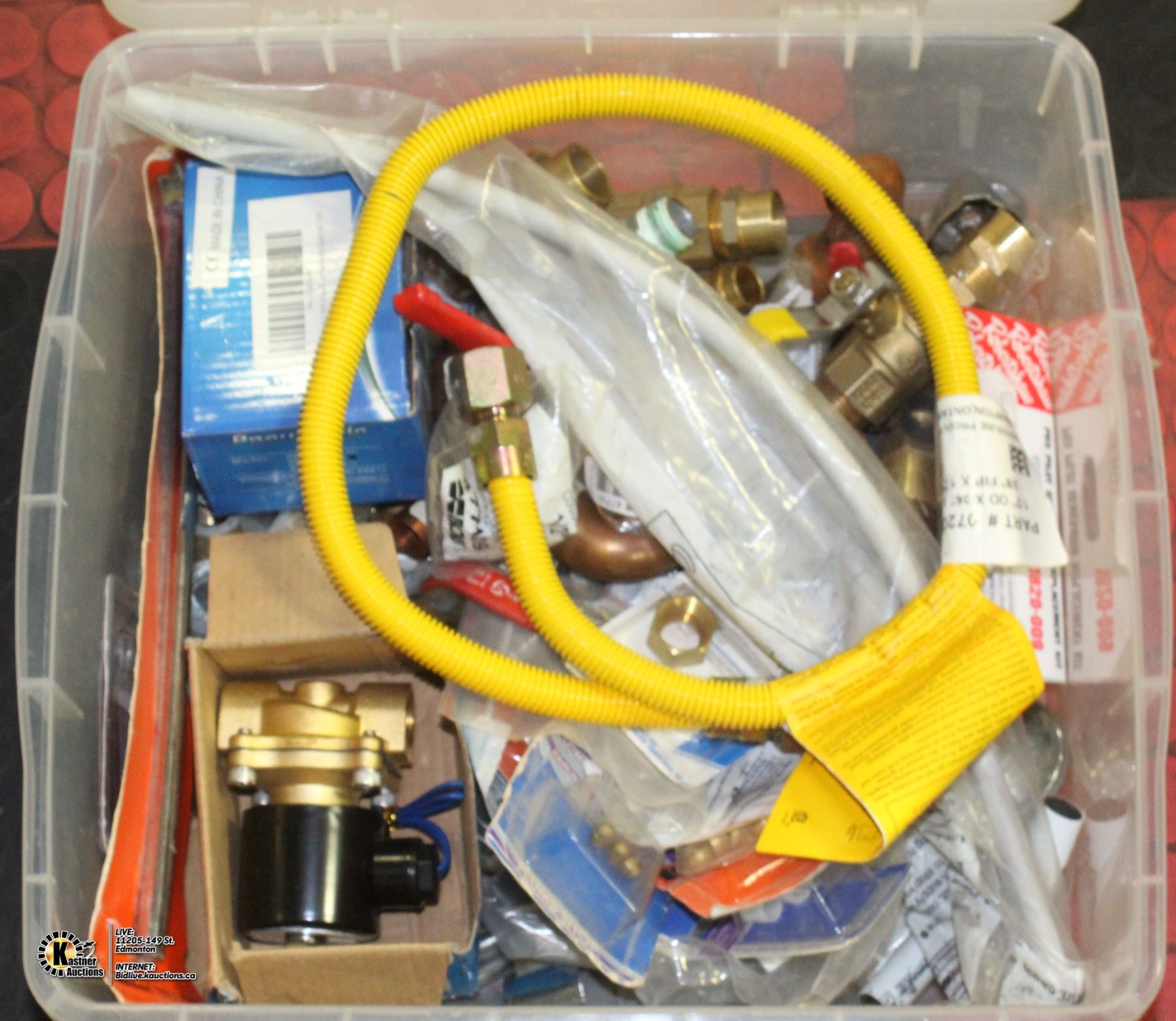 BIN OF MISC PLUMBING PARTS