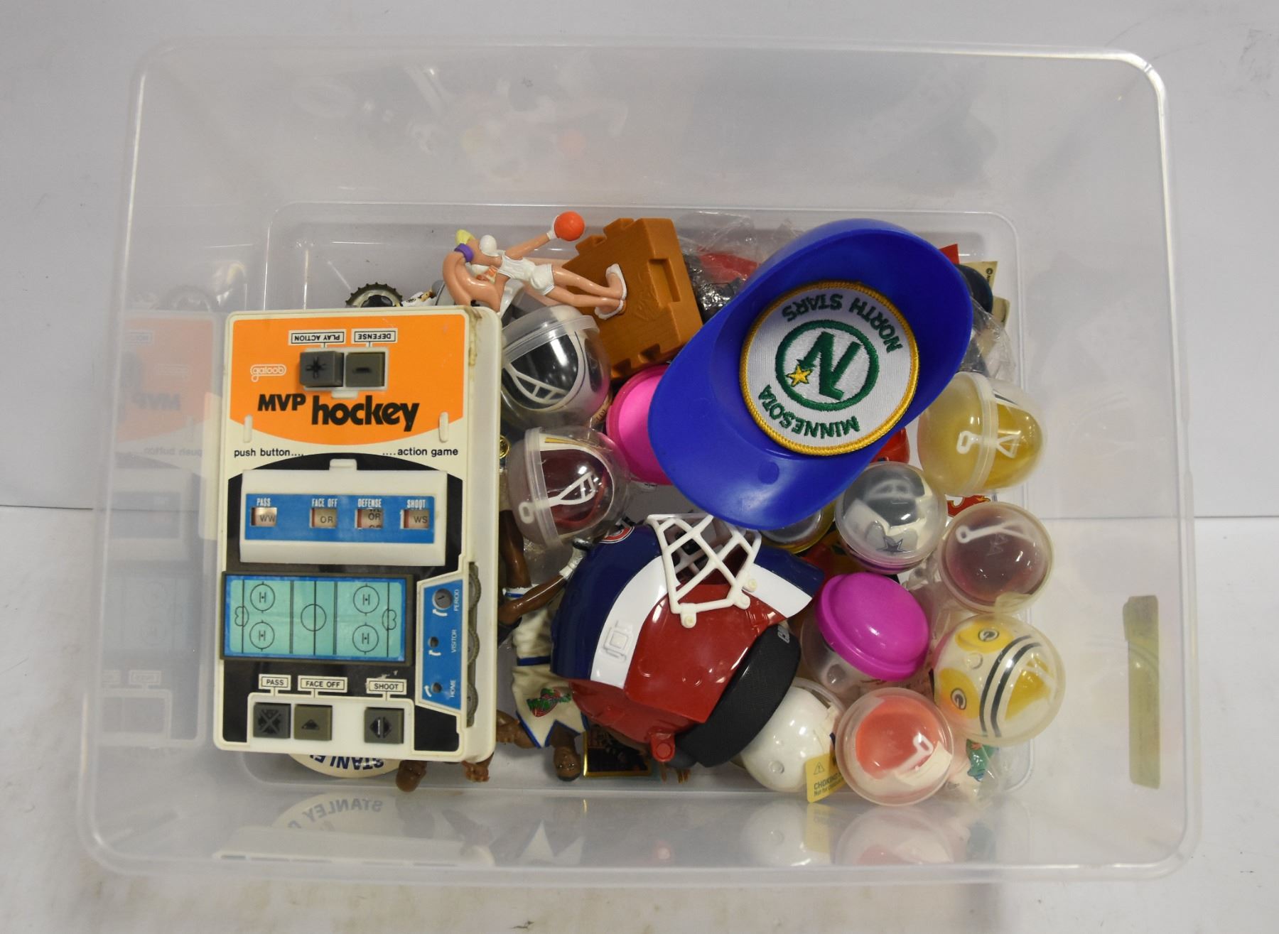 ORIGINAL SPACE JAM FIGURES INC. MJ, MORE MINI COFFEE CUPS, VINTAGE MVP HOCKEY GAME, VARIOUS OTHER PINS AND FIGURES
