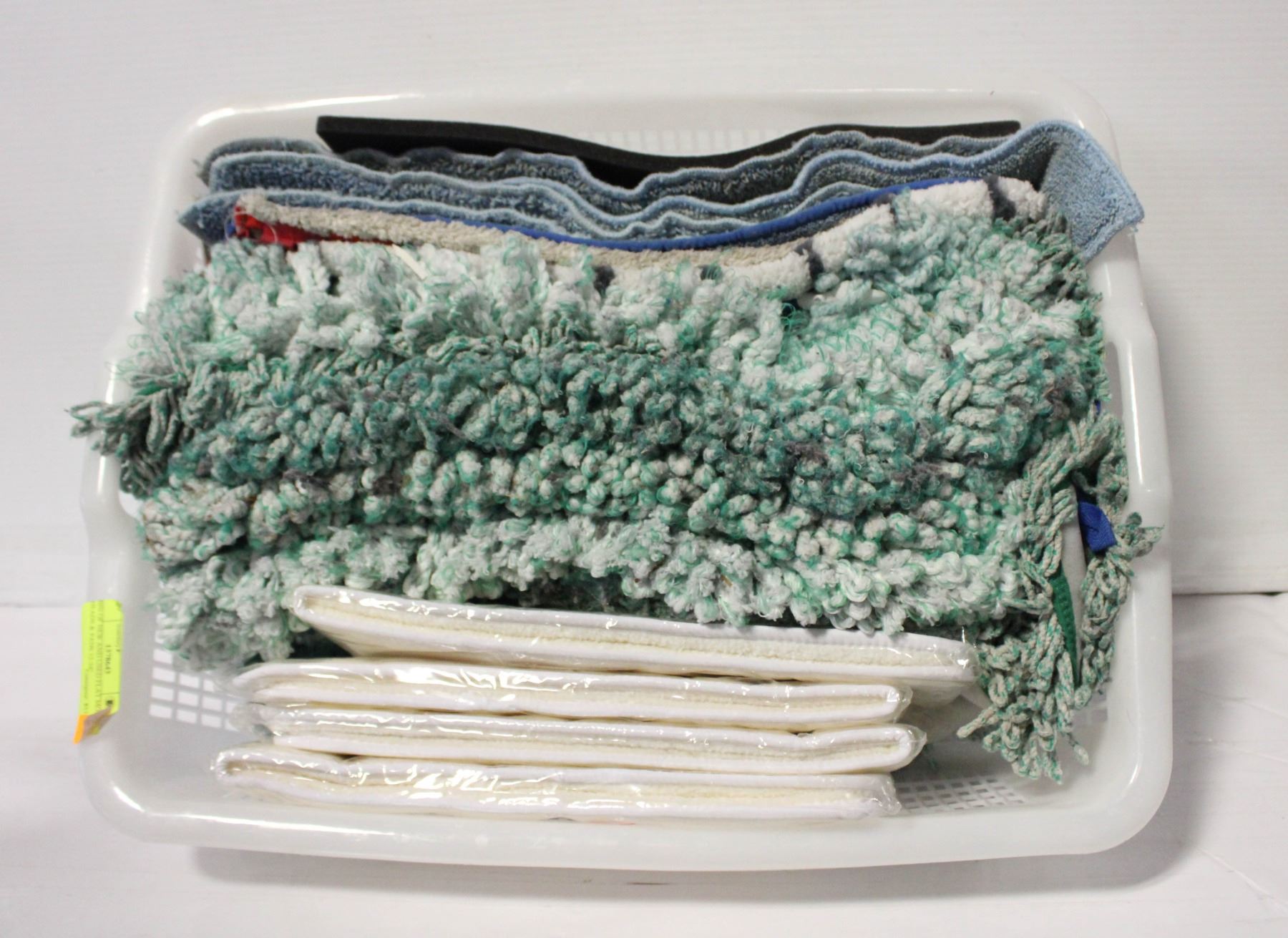 BIN OF NEW AND USED FLAT MOP HEADS & PADS 12-24"