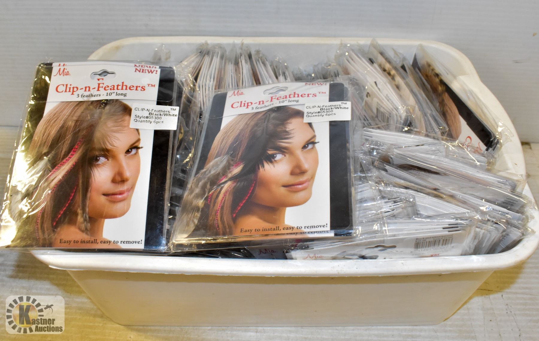 BIN OF NEW CLIP IN FEATHERS - VARIOUS COLORS