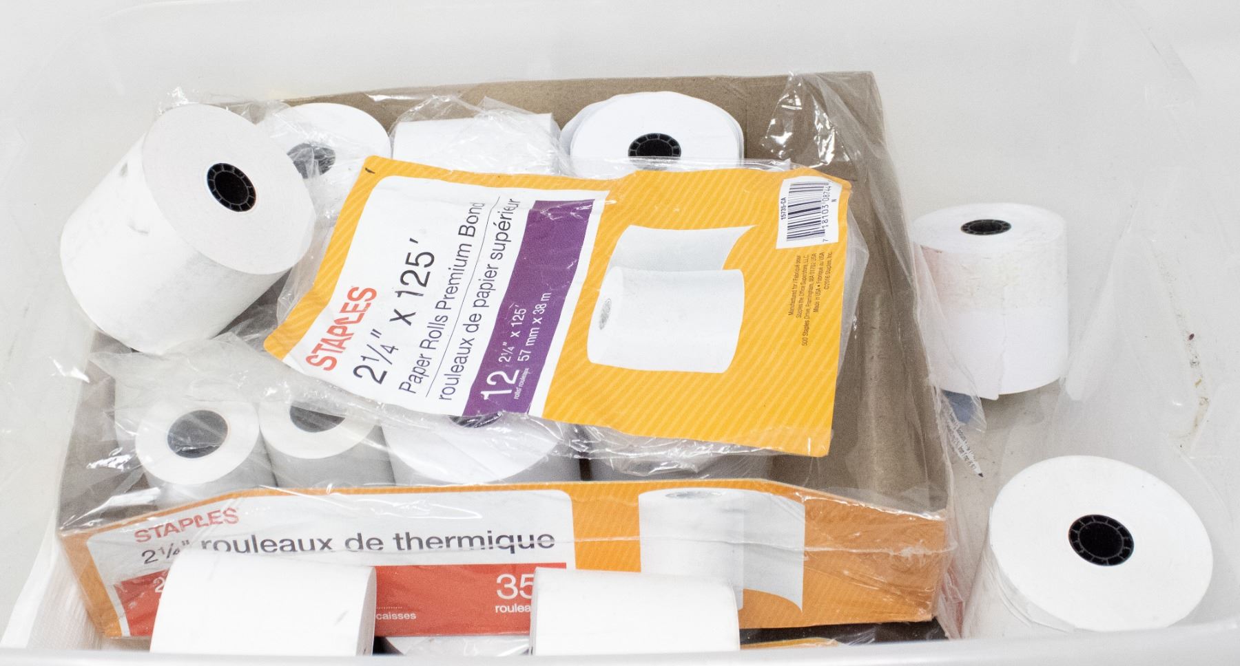 BIN OF NEW THERMAL RECEIPT ROLLS