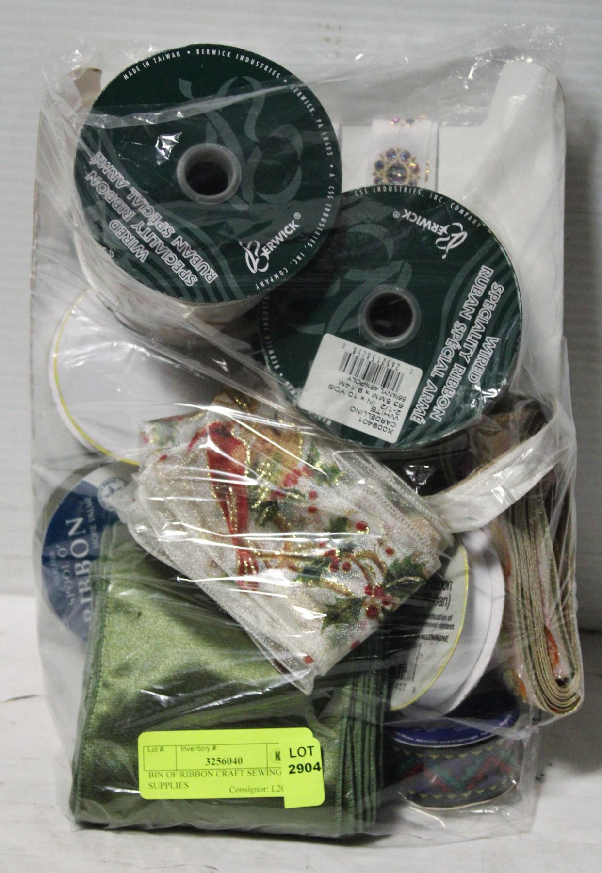 BIN OF RIBBON CRAFT SEWING SUPPLIES