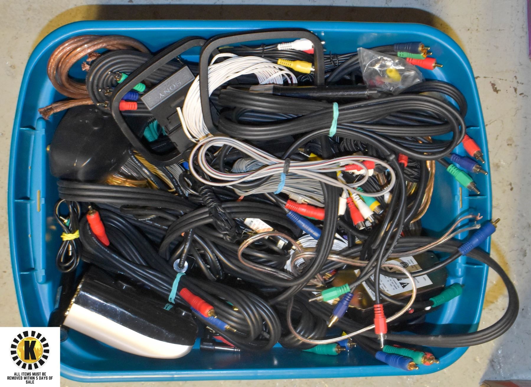 BIN OF STEREO CABLES & SPEAKER WIRE