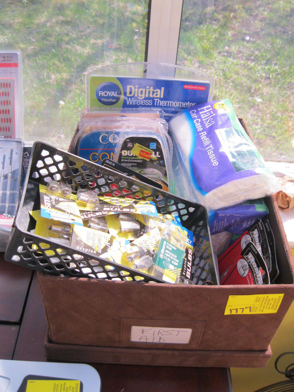 BIN W/MISC. BATTERIES, LOCKS, ETC.
