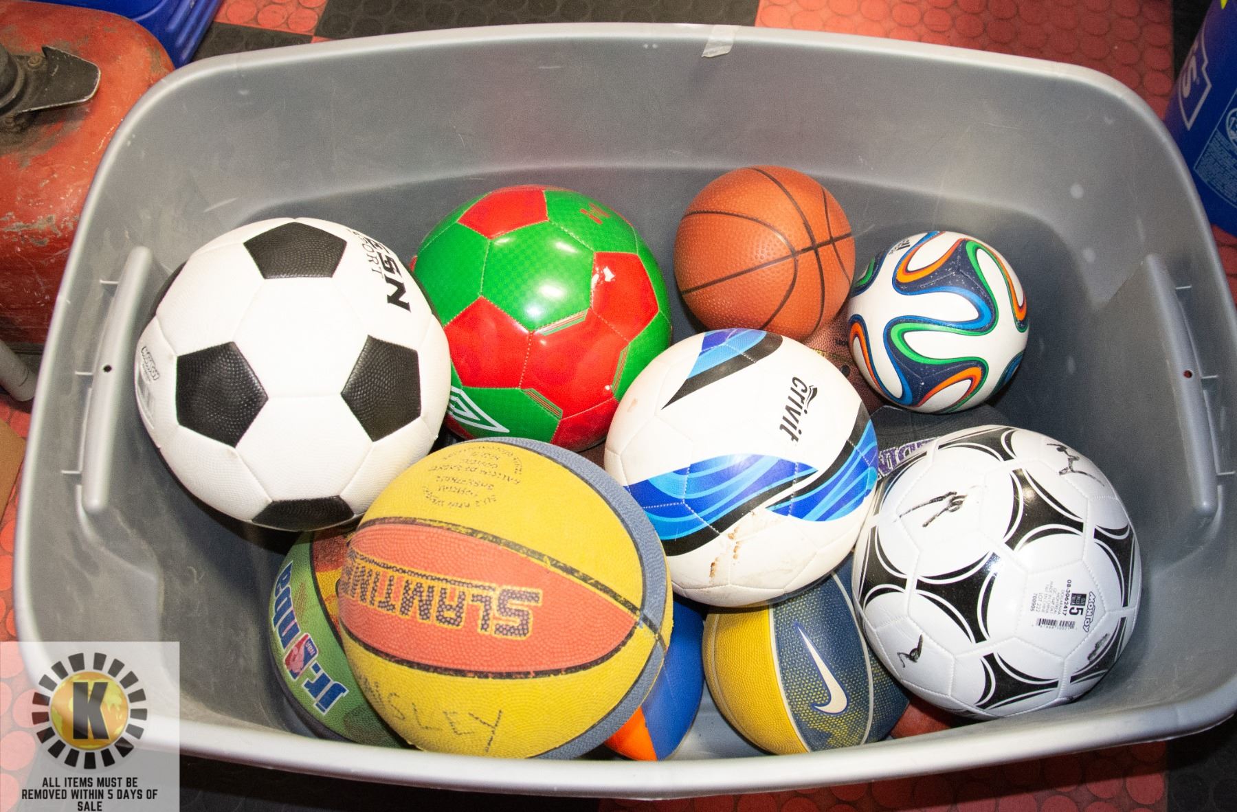 BIN WITH APPROX 15 VARIOUS SPORTS BALLS