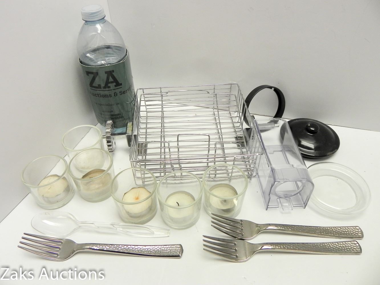 BIN WITH NAPKIN HOLDER, TEA LIGHTS, ETC