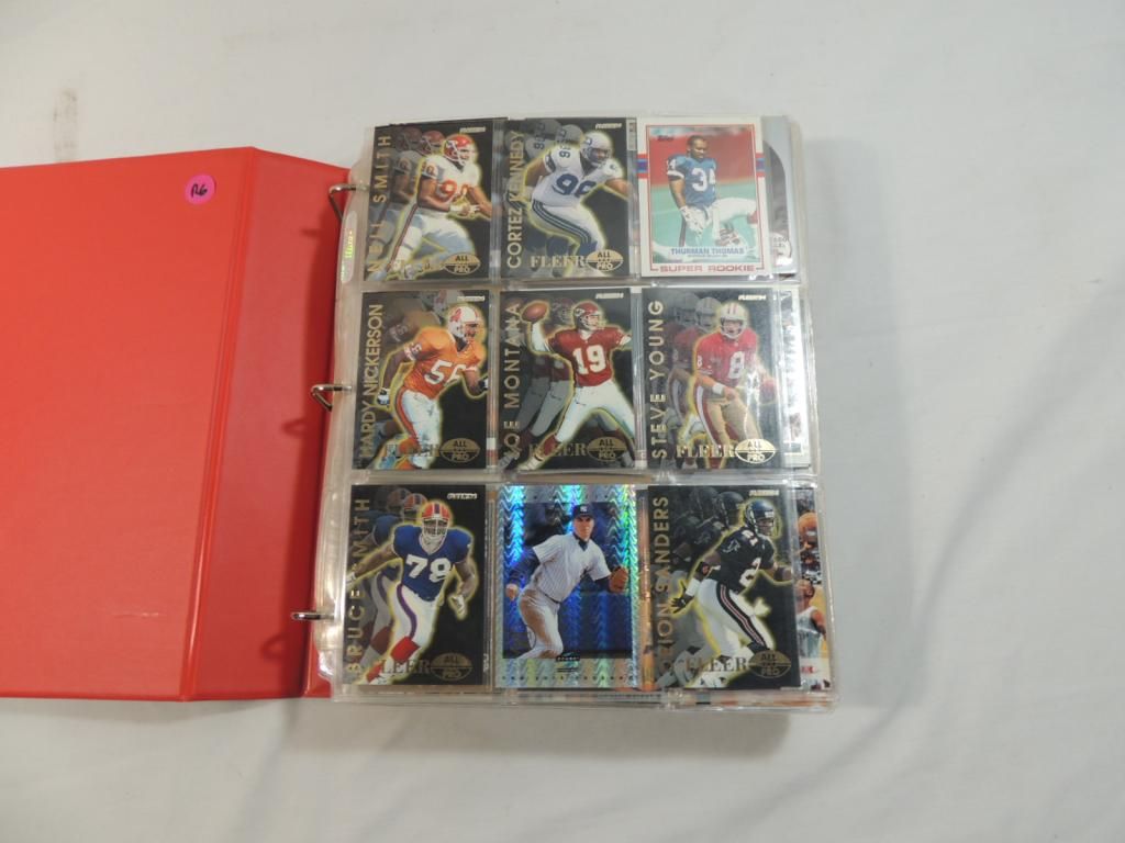 STAR COLLECTION #5. BINDER FULL FOOTBALL PLAYER CARDS. VARIOUS PLAYERS. MIXED MAKERS AND MIXED DATES. STARS COLLECTIBLE. FOOTBALL TRADING CARDS. AS SHOWN SEE PHOTO FOR MORE DETAILS.