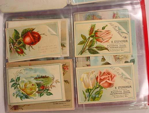 BINDER FULL OF VICTORIAN TRADE CARDS - ALL ROSE THEMED