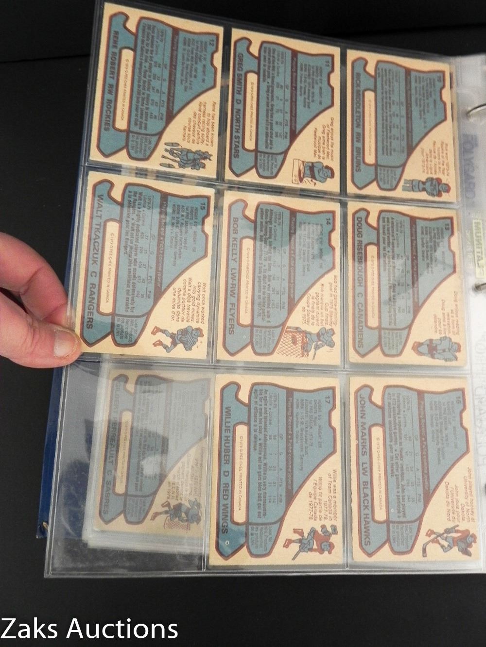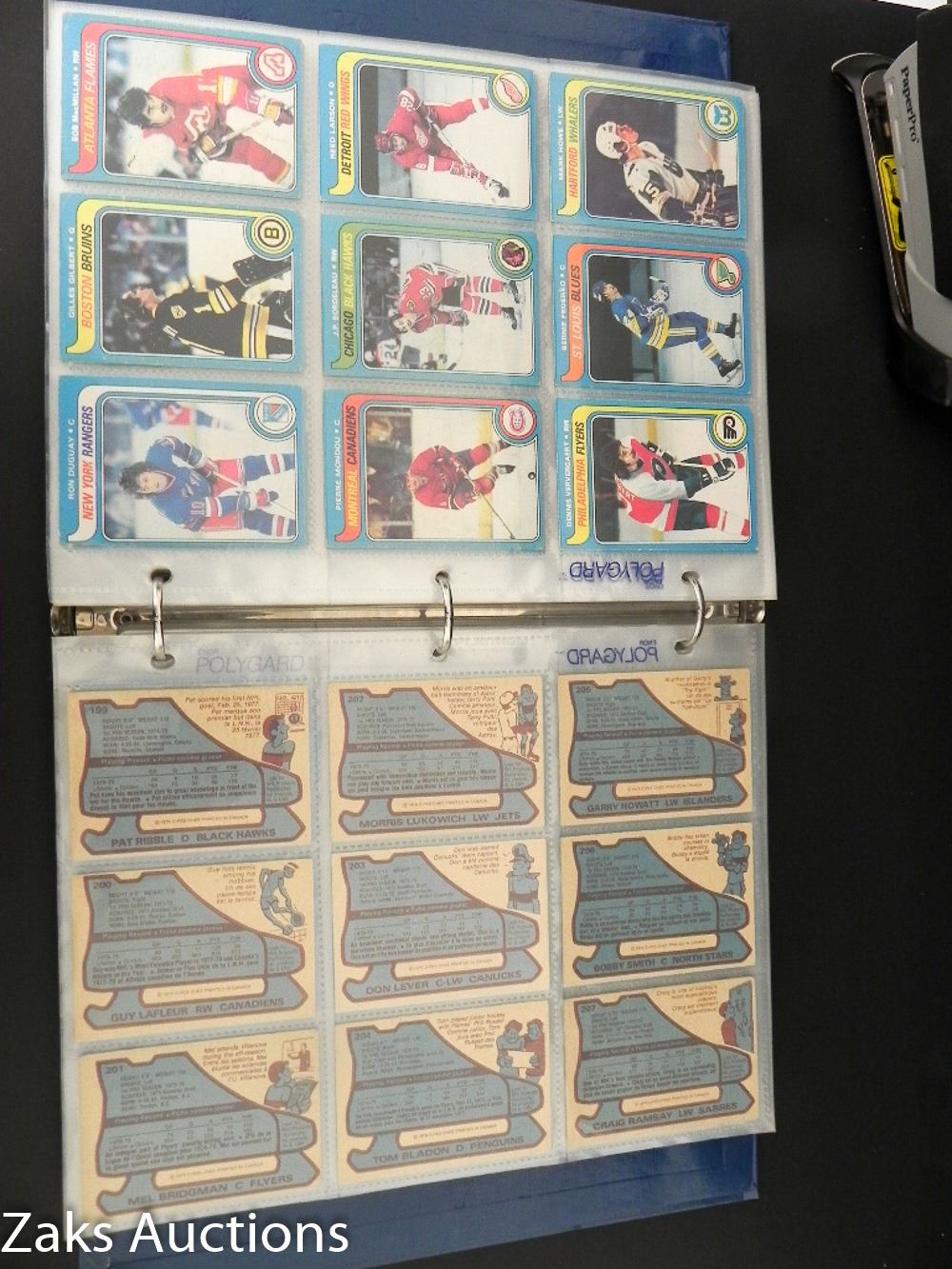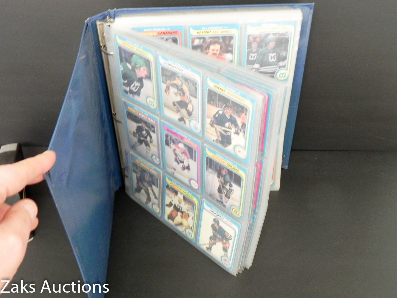 BINDER WITH 1979-80 O-PEE-CHEE HOCKEY SET. NEAR COMPLETE ONLY 1 CARD MISSING. THE 1ST OWNER DID HAVE THAT MISSING CARD, SADLY IT IS NO LONGER WITH THE SET :( BOSSY, ESPOSITO, HULL, DRYDEN + MORE STILL IN THERE