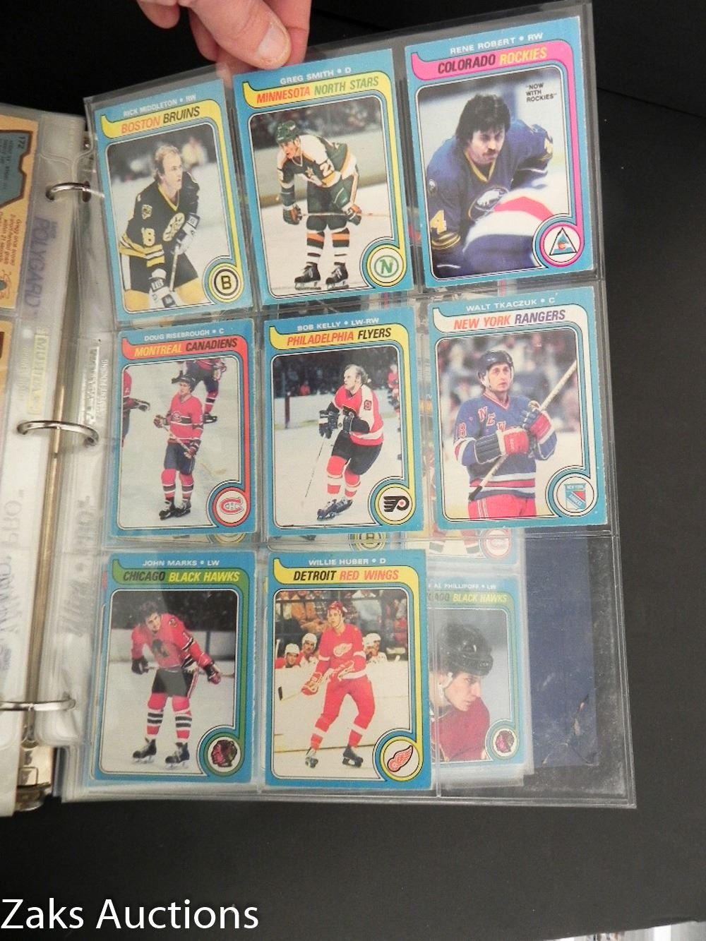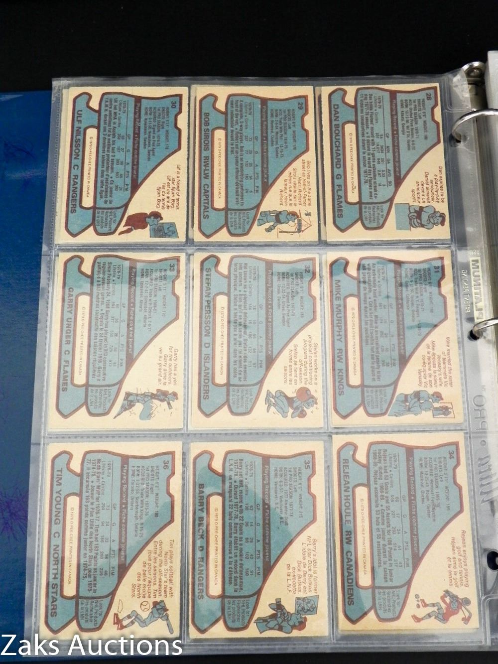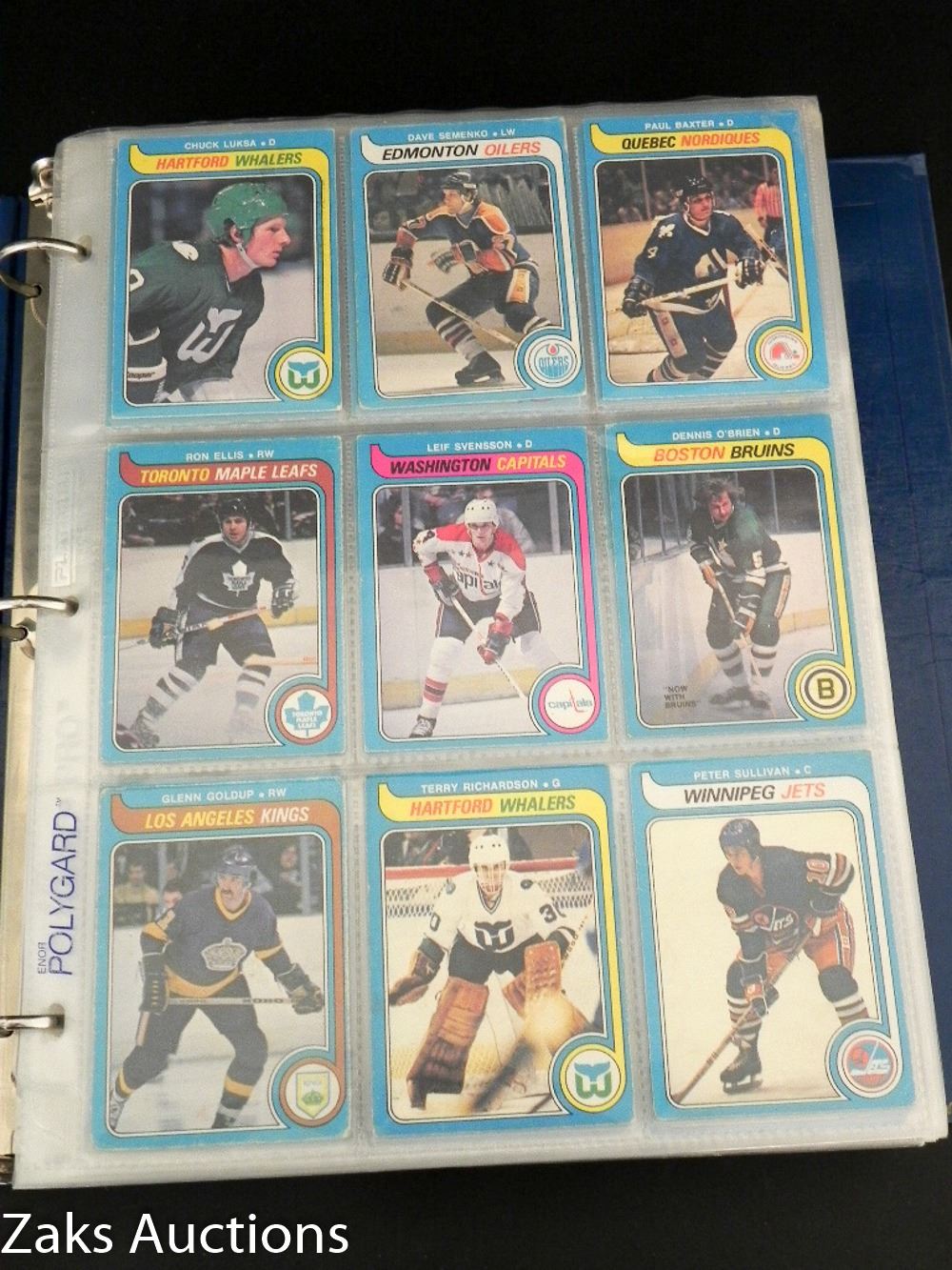 BINDER WITH 1979-80 O-PEE-CHEE HOCKEY SET. NEAR COMPLETE ONLY 1 CARD MISSING. THE 1ST OWNER DID HAVE THAT MISSING CARD, SADLY IT IS NO LONGER WITH THE SET :( BOSSY, ESPOSITO, HULL, DRYDEN + MORE STILL IN THERE
