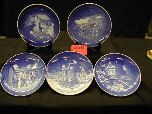 BING & GRONDAHL 7 1/8in PLATES INCLUDES (1) 1980 CHRISTMAS IN THE WOODS, (1) 1982 THE CHRISTMAS TREE, (1) 1983 CHRISTMAS IN OLD TOWN, (1) 1984 THE CHRISTMAS LETTER, (1) 1987 THE SNOWMANS CHRISTMAS EVE, 5 PCS ALL EXCELLENT!!!