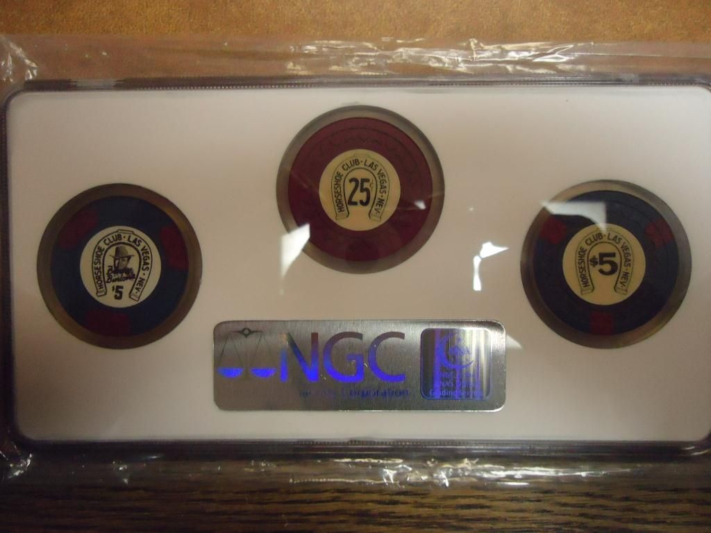 COLLECTION, $5 NAVY, 25 CENT RED AND $5 BLUE IN A NGC MULTI COIN HOLDER SLAB