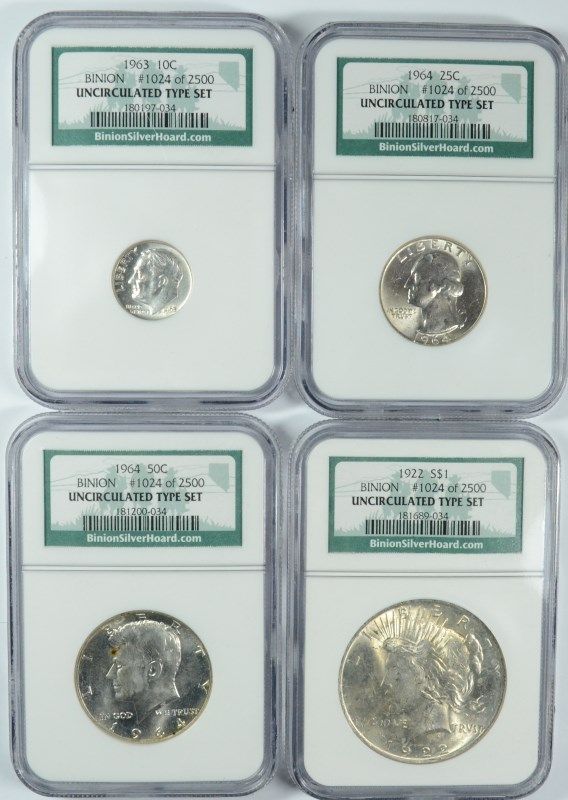 BINION SET (.10, .25, .50, $1) NGC UNC (#1024 OF 2500)
